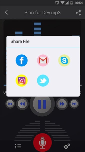 È anche possibile inviare il file di registrazione a chiunque tramite e-mail, Facebook, WhatsApp, SMS, ecc. Il file audio è disponibile anche sul dispositivo Android. È possibile condividerlo con i propri amici tramite Facebook, Twitter, e-mail, ecc. La registrazione è disponibile anche sul telefono Android.